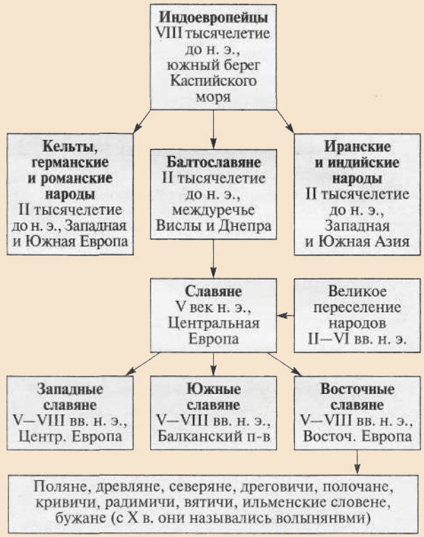 Все славянские языки относятся к единой индоевропейской группе. Ее представители выделились как народность примерно в 8-ом тысячелетии до нашей эры. Обитали предки восточных славян (и многих других народов) у берегов Каспийского моря. Примерно во 2-ом тысячелетии до нашей эры индоевропейская группа распалась на 3-и народности: