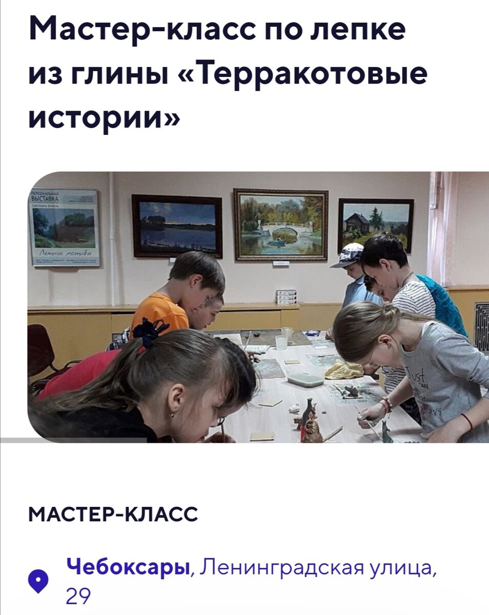 События на которые точно сходит сходить если вы являетесь творческим человеком и хотите развить свой творческий потенциал На мастер-классе вы узнаете все про виды глины, подготовку ее к использованию, а темы занятий будут весьма разнообразны: от различных фигур животных и птиц до необычных сосудов и подсвечников, украшений и сувениров. Существует много способов ручной лепки сосудов, все они отличаются своими техническими решениями. На наших занятиях можно освоить различные технологии лепки, например, ленточную керамику, ручную лепку из цельного куска глины, пластовую или текстильную технику. Вы получите рекомендации по правильной сушке готового изделия, а после завершения работу можно обжечь в муфельной печи и расписать в разнообразных техниках. Ссылка на данное мероприятие:https://vmuzey.com/event/master-klass-po-lepke-iz-gliny-terrakotovye-istorii Второе событие в моем списке Ссылка: https://vmuzey.com/event/master-klass-linogravyura-1 Ссылка на данное мероприятие: https://vmuzey.co