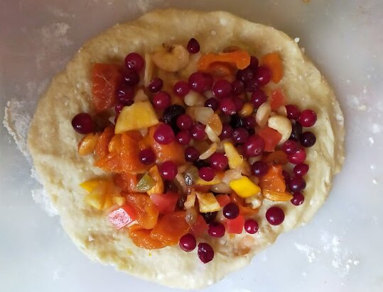 Рождественский штоллен - это традиционное праздничное блюдо в Германии, по форме и белому цвету напоминает завёрнутого в пеленки младенца Иисуса Христа. По традиции посыпают сахарной пудрой. История Штоллен впервые упоминают в средневековой летописи 1329 г. До 1491 года был рецепт из муки, овса и соды - продуктов растительного происхождения, потому что рождественский пост. Но 10 июля 1491г. папа Иннокентий VIII издал "масляный декрет", разрешили пить молоко и есть сливочное масло во время поста, а взамен вносить деньги на строительство собора. В этом же году придворный пекарь Генрих Драздов, служивший в замке Хартенштайна, придумал добавлять в штоллен сухофрукты и постный хлеб. В интернете можно найти много рецептов приготовления штоллена. Но мне понравилась выпечка с сухофруктами, творогом и сливочным маслом. В прошлом году испекла штоллены, много времени не потратила. Нашла для себя #быстрый рецепт Ингредиенты для начинки: Орехи, сухофрукты, кумкват (около 300 гр.), мелко порезанн