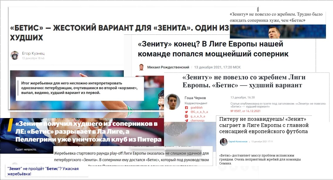 Через два месяца в 1/16 финала Лиги Европы "Зенит" сыграет с испанским "Бетисом". Крайне редко приходится принижать возможности соперников наших команд в Еврокубках - чаще, напротив, необходимо напоминать, что ни советские, ни российские команды в футболе грандами не являлись и не являются, а "играть в футбол научились все". Но единодушный тон заголовков просто вынуждает: