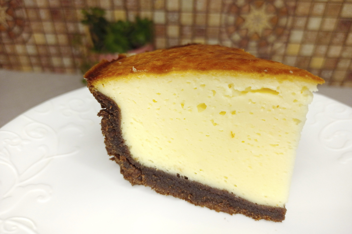 Такая творожная запеканка делается из доступных ингредиентов. Она получается влажной, нежной, пористой и очень вкусной. Что важно – не было ни разу, чтобы этот десерт у меня не получился. Знаете, иногда с выпечкой случается, что тесто не подойдёт, или в духовке не поднимется, как планировалось. Тут такого нет – получаем на 100% отличный результат! ツ Список ингредиентов и их количество в конце статьи. ПРИГОТОВЛЕНИЕ Шоколадное печенье измельчаем в крошку. Масло нужно растопить. Смешиваем масло с крошкой и утрамбовываем в форму для выпечки (у меня диаметр формы 19 см), как на фото, сформировав дно и бортики. Форму лучше простелить бумагой для выпечки. Творог, сметану, яйца, сахар и соль взбиваем погружным блендером до однородности. В эту же ёмкость просеиваем муку и вымешиваем. Заливаем в подготовленную форму с прессованной шоколадной крошкой. Выпекаем при 170 °С примерно 40-50 минут. Во время выпечки духовку лучше не открывать. Когда верх хорошо зарумянится, выключаем, но оставляем в зак