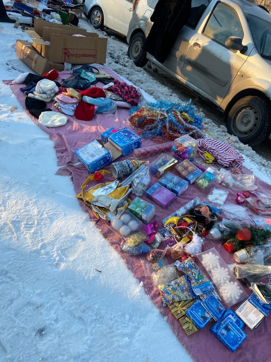 Всем привет. Это последняя серия статей, о казанской #барахолке , которую я посетил в эти выходные. Очень ходкий товар, это #елочные игрушки . Ну и старые вещи. В основном, все выглядит вполне прилично, но над вещевыми рядами стоит стойкий запах... Ну, видимо, какой-то обработки, что говорит о том, что они были куплены в секонд-хенде. О! Советские лыжные крепления! Можно найти по 50 рублей - пару. Вообще -модно отсюда уйти экипированным, с ног до головы, как советский любитель лыжных прогулок, рублей за 900-1000. Включает эта сумма: лыжи, лыжные палки, спортивный костюм и ботинки. А вот это заставило задуматься: Оказывается, можно бойко торговать частями старой мебели! Задумался - не всегда можно вывести мебель целиком, а вот открутить, например ножки - можно. Довольно любопытный ряд: Утепленная одежда дешевле, чем в специализированных магазинах. Вроде как, ее в Дагестане шьют: Ну и ножи. Снова - инструменты: Игрушки и платы: Вот качество вещей поближе: Обогреватели вроде: Такие проиг
