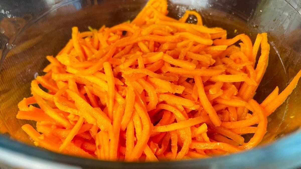 И для Новогоднего стола, и на ужин. Потрясное сочетание ингредиентов и майонез не нужен! Любимый салат нашей семьи! Жаль, что не я придумала рецепт :) У подруги подглядела на праздничном столе. С того дня раз в неделю стабильно готовлю дома и на каждый праздник! Нам понадобится Все продукты легко найти в ближайшем магазине и заморочек с приготовлением нет! Идеально! Готовим! 1. Открываем баночку корейской моркови и выкладываем в Салатник Я не заморачиваюсь: покупаю готовую корейскую морковь. Радует, что есть такая возможность - сэкономить время. Но домашние рецепты тоже вкусные бывают, да! 2. Тонко нарезаем свинину/говядину, солим, перчим. Поджариваем, а затем тушим до готовности 3. Очищаем свежий огурец от кожуры Всегда очищаю огурцы, чтобы не вносить ненужную плотность в блюда. К тому же кожица огурцов может горчить, а нам нужен ВКУСНЫЙ салат! 4. Нарезаем огурец тонкой солонкой (чем ближе к длине и ширине корейской моркови, тем лучше) Чтобы нарезать огурцы быстрее, воспользуйтесь те