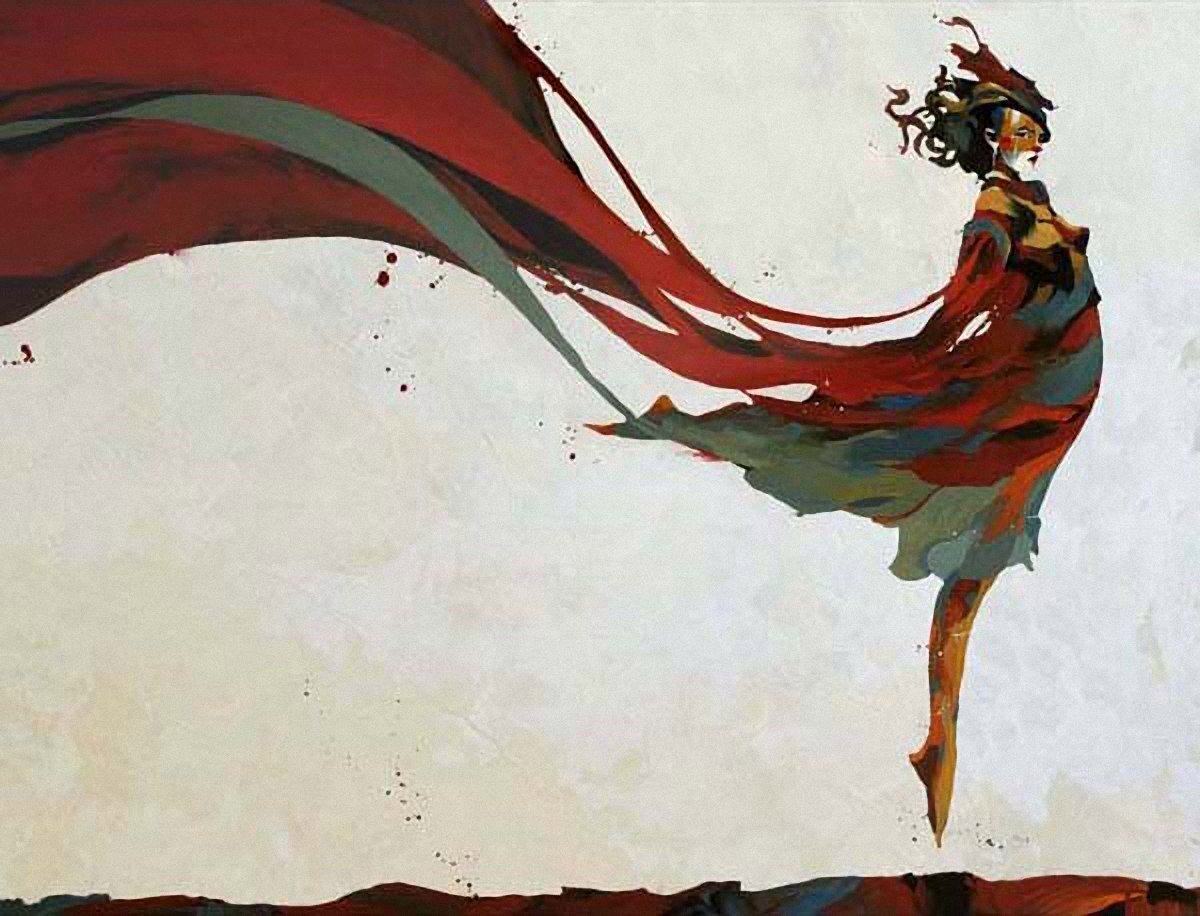 Свои картины он создаёт акрилом в динамичной, декоративной манере, в устойчивой землисто – красноватой гамме.