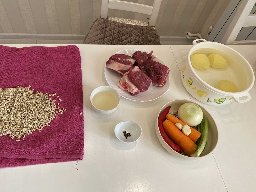Привет дорогие друзья, меня зовут Алексей, я готовлю разные вкусные и простые блюда, у меня есть еще канал на ютубе, называется ДОМАШНЯЯ ЗАГОТОВКА там у меня больше 1400 выдео разных направлений рецептов ,есть там плейлисты с разделами, я уверен вы точно подберете себе блюдо на любой вкус, я очень стараюсь для вас ,если вам интересно заходите и на ютубе канал буду очень рад с вами подружится, там же можете оставить мне комментарий, с радость на него отвечу ,еще друзья попрошу вас писать комментарии и ваши пожелания ,вместе с вами и прекрасным настроением всегда, на приготовлении сегодня у нас будет СУП ЗА 450 РУБ СОСТАВ, ПЕРЛОВАЯ КРУПА ПОЛЕЖАЛА В ВОДЕ 12 ЧАСОВ, СЕЙЧАС ПРОМЫЛ ЕЩЕ РАЗ И ПОЛОЖИЛ ОБСЫХАТЬ в сухой сковороде обжарю перловку немного 3 минутки зарумянилась, прекрасно запахла, значит готова пока уберем ее в сковороду вольем немного растительного масла и добавим говядину обжариваем до румяности вот достаточно отправляем в кастрюлю с водой подсаливаем и под закрытой кры