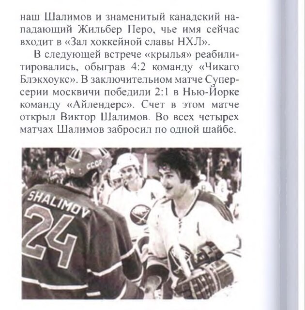На фото спартаковская четверка в составе "Крылья Советов". В последствии стали традицией новогодние матчи советских команд в гостях у клубов НХЛ. Ещё состоялось семь Суперсерий до 1991 года. Итак, заглянем как там сыграли "Крылья Советов". 29 декабря 1975 "Питтсбург Пингвинз" (США) - "Крылья Советов" 4:7 Голы забивали: 01:45 0-1 Вячеслав Анисин, 04:33 0-2 Владимир Шадрин, 12:10 0-3 Виктор Шалимов, 15:25 0-4 Александр Якушев 21:39, 0-5 Вла