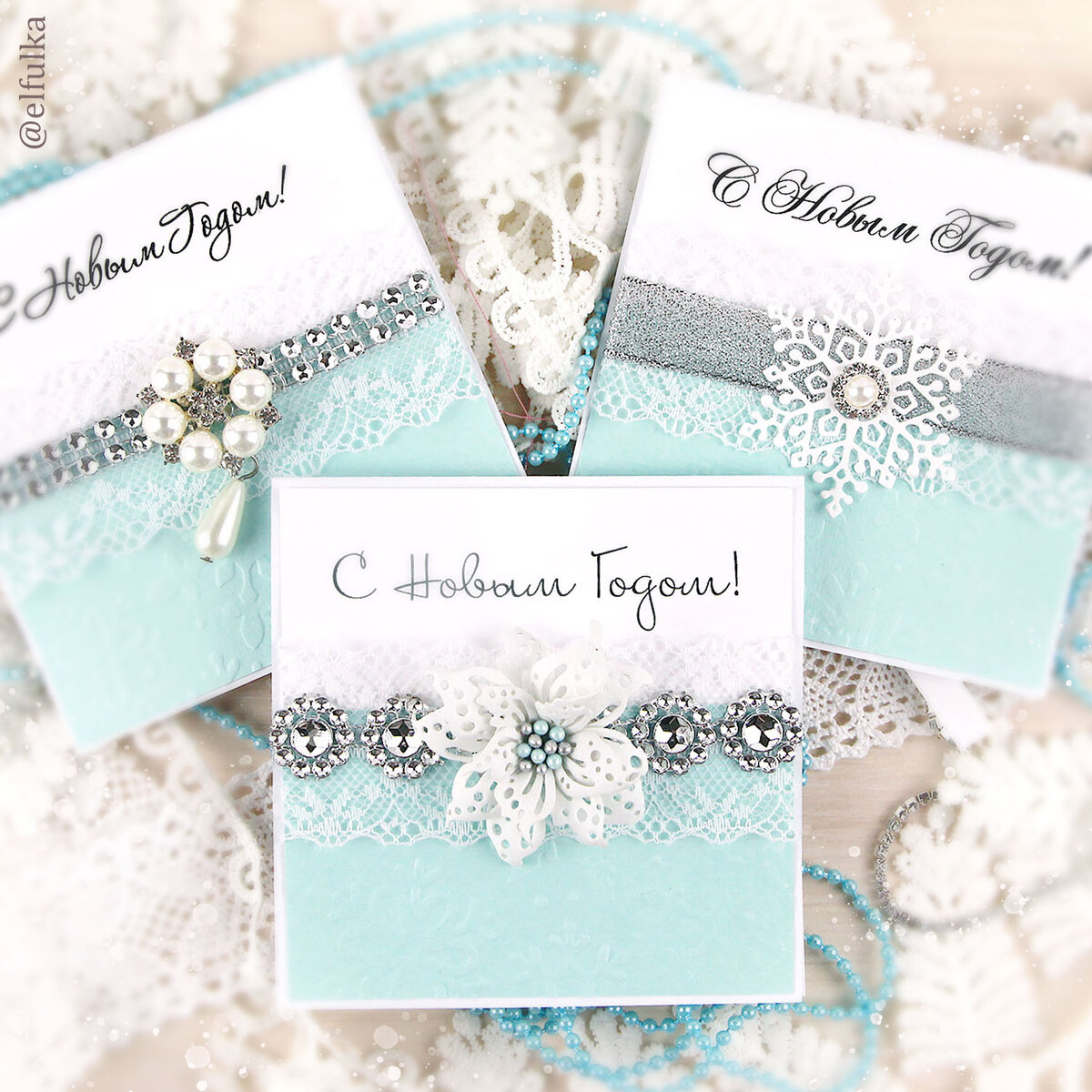 Всем творческий привет! Сегодня покажу, как я делаю простые и стильные новогодние открытки. Открыточки небольшие, поэтому мне нравится делать их наборами. В оформлении таких открыток использую небольшое количество деталей. В качестве декора чаще всего использую готовый декор: кружево, ленты, чипборд, броши и т.д. РАЗМЕР открыток: 10х10см МАТЕРИАЛЫ, которые понадобятся для создания таких малышек: 🔸1. Для основы я использую дизайнерский картон молочного цвета (плотность 200гр/м2). Вы можете использовать ватман, кардсток или бумагу для акварели 🔸2. Подложки из бумаги для пастели. Предварительно на бумаге сделала тиснение «снежинки» с помощью папки для тиснения и машинки. Вы можете взять просто бумагу для скрапбукинга с новогодним рисунком. 🔸3. Подложки с надписями. Такие заготовки делаю в графическом редакторе, а затем распечатываю на матовой фотобумаге. 🔸4. Цветок ручной работы из фоамирана. Использовала нож от Fantasy (Райский цветок). Можно заменить любым другим цветочком. ?