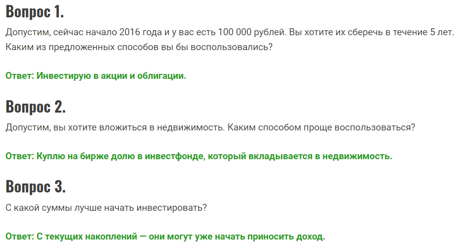 Лимонный царь подготовил тебе ответы , если ты пришёл по рекомендациям Дзена , то вот с чего началось - ССЫЛКА Некоторые ответы могут не совпадать ПО ТЕКСТУ , так что сверяйте по смыслу. Мои скриншоты почему то удалились , поэтому взял ответы с сайта - https://infq.ru/ Перед тем, как начать проходить обучение, советую сделать любое пополнение на 100-500 и купить любую акцию.