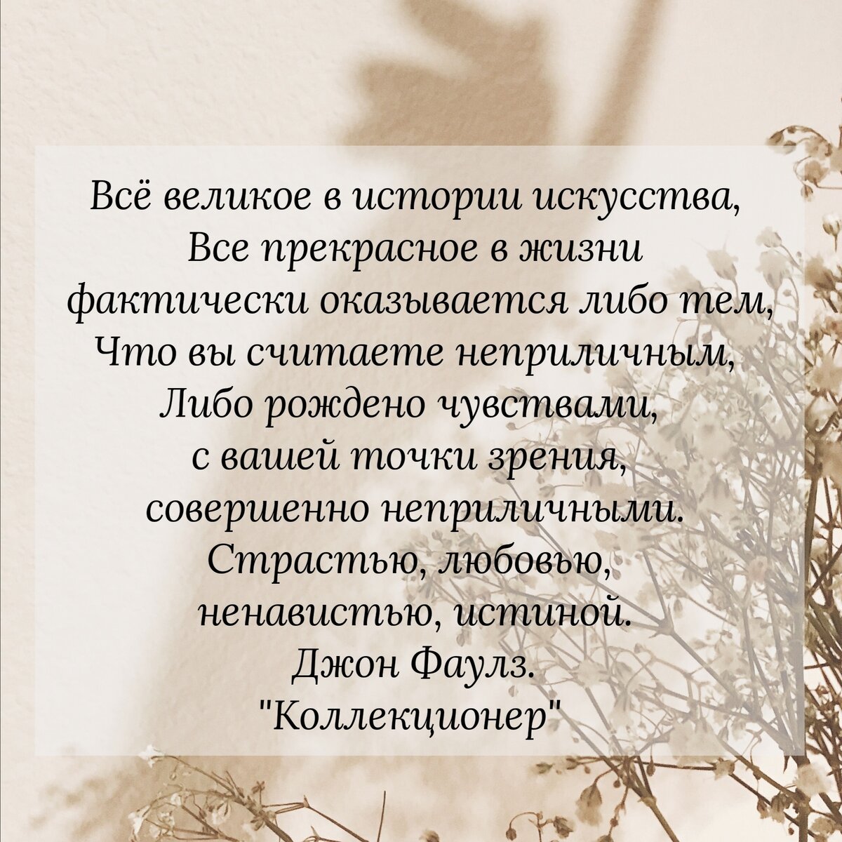 В этой книге автор рассказывает безумно любви молодого человека к юной и красивой девушке. Любви или просто навязчивой идеи? Чувство ли это или же просто желание обладать? Этот вопрос на мой взгляд является главным в произведении Джона Фаулза. Молодой человек одержим коллекционированием бабочек. Он в принципе одержим своими идеями и убеждениями. Правильны ли они? Наверное, нельзя вот так просто судить об этом, ведь у каждого свои взгляды, свое мнение. Но одно из данной истории ясно точно: коллекционер и его "экспонат" были абсолютно разными. Она очень нежная, ранимая, образованная, творческая натура. Верит в лучшее, в справедливость, добро и настоящую любовь, которая не пачкается грубостью, непристойностью, ложью и другими низкими качествами. Они были слишком разные. Их отношения в обычной жизни были невозможны. Она была для него как прекрасная картина : он мог просто смотреть на неё, но никогда не прикасаться. Но все же он слишком сильно желал, чтобы она была его. И ради этого бы