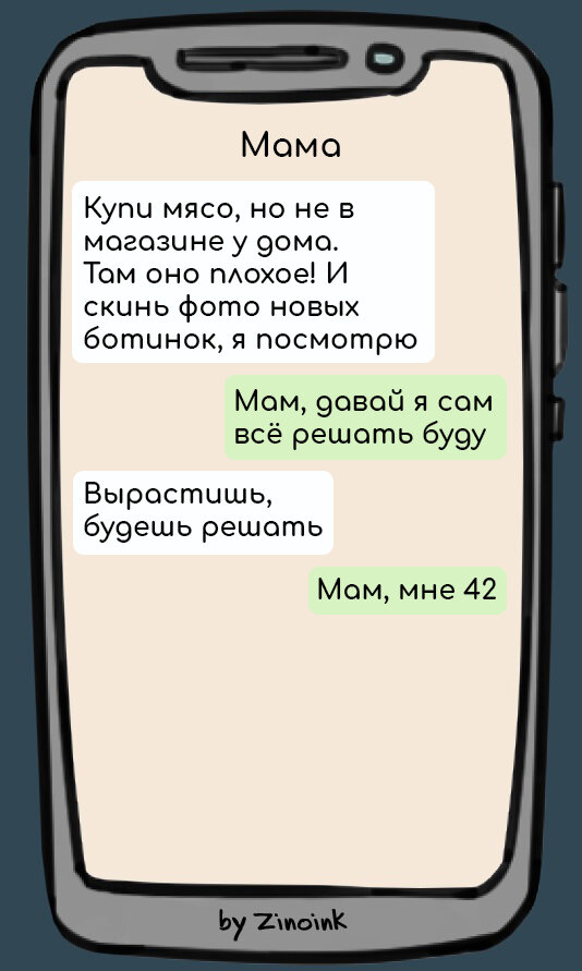 Мамы привыкли всё контролировать и властвовать. «Куда вчера ходил?», «Скинь фото из отпуска», «Оплати мою ипотеку». На самом деле у такого поведения есть логическое объяснение. Все это делается для того, чтобы уберечь ребенка. Ну кроме последней фразы.