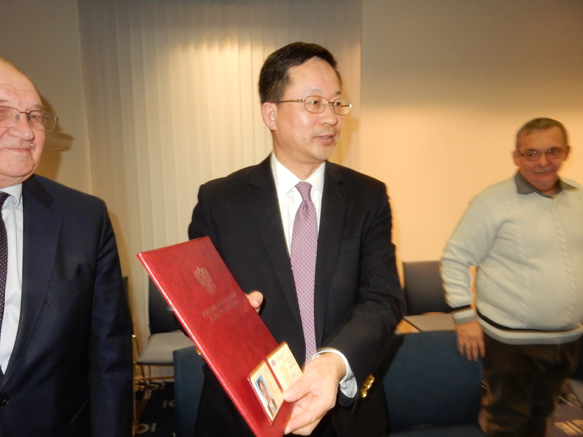 Юрий Яковец, член Президиума РАЕН, Президент Международного института (МИСК) вручил Президенту Союза китайских предпринимателей в России, Президенту Международного Бизнес-Парка «ГРИНВУД» г-ну Чжоу Лицюню Диплом, удостоверение и знаки действительного члена Академии. Высокое звание является выражением признания научных и организационных достижений г-на Чжоу Лицюня в расширении российско-китайского сотрудничества, а AO «Greenwood» уже много лет играет активную роль в организации научного, образовательного и торгово-промышленного взаимодействия. В 2021 году, Перекрёстном Году научно-технического и инновационного сотрудничества России и Китая, было проведено множество мероприятий, которые несмотря на пандемию собрали учёных, предпринимателей, студентов двух стран в разных отраслях науки и промышленности. Российско-Китайская Палата, Международный Конгресс промышленников и предпринимателей, Московская Школа Управления "Сколково" и партнёрские организации стали организаторами ряда российско-к
