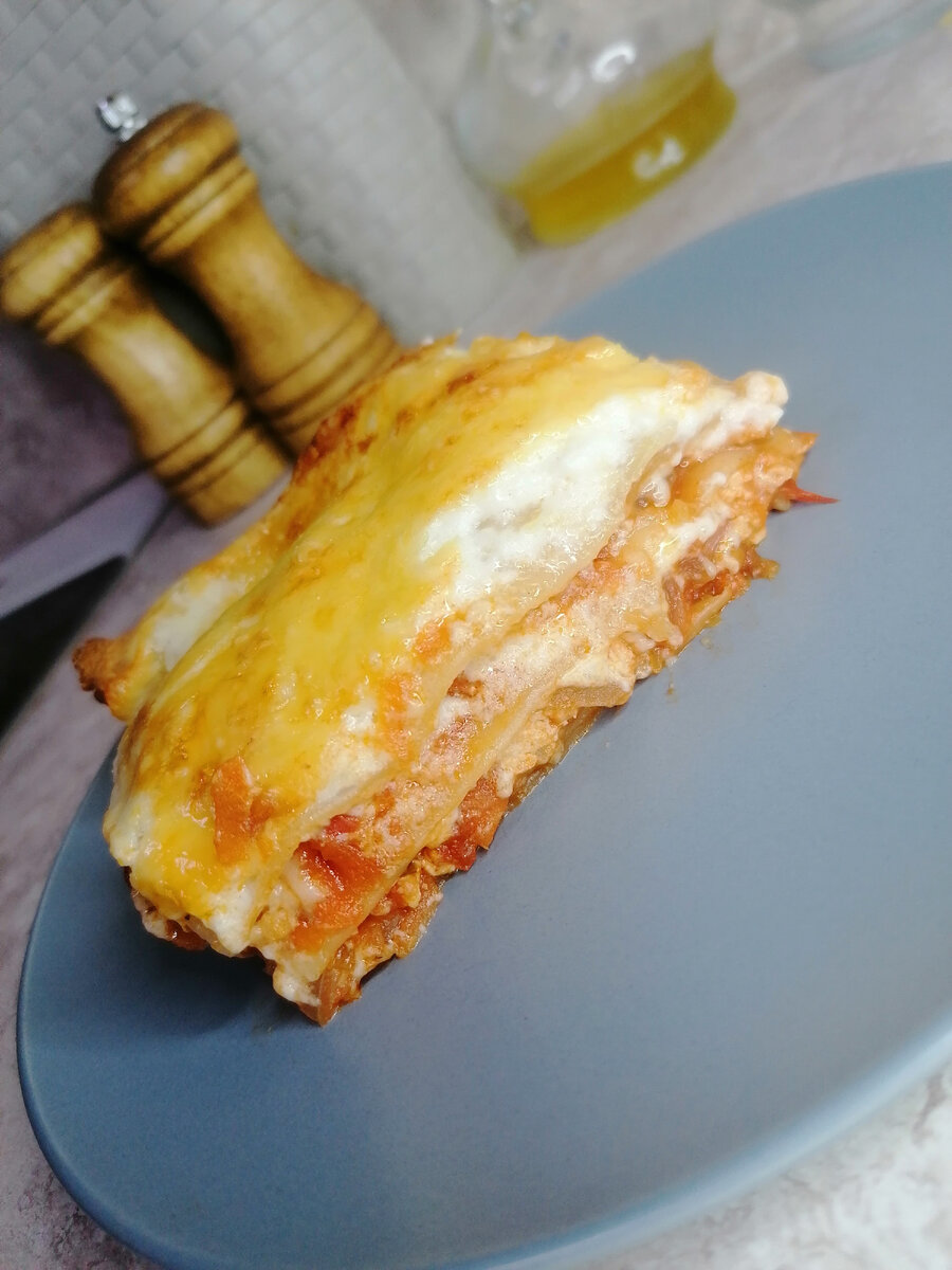 КБЖУ на 100 грамм 112/8/1,5/17 Обычная классическая лазанья по калорийности до 270 ккал, поэтому впринципе ею можно наслаждаться 2-3 раза в месяц даже если ты на диете. Ну а этот рецепт вообще сказка 112 ккал!!! 🚩Что нужно? ➕Мясной слой 350 грамм филе куриной грудки 400 грамм помидоров 300 грамм морковь 250 грамм лук 1 ч.ложка томатной пасты Соль, специи ➕Соус "Бешамель" низкокалорийный. 400-500 мл. молока 1 ст.ложка (8 гр.) кукурузного крахмала 1 ст.ложка (10 гр) рисовой муки ➕Готовые листы лазаньи из твердых сортов пшеницы. Как приготовить? 1️⃣Из куриного филе сделать фарш. 2️⃣Подготовим овощи: мелко порезать лук, натереть на терке морковь. Помидоры порезать и положить в глубокую миску. Погружным блендером измельчить до однородной массы. 3️⃣Обжарить на сковороде, на небольшом количестве масла лук и морковь, добавить к овощам фарш из куриного филе. Хорошо перемешать, потушить немного и залить все измельчеными помиродами. Потушить минут 5-7. 4️⃣Добавляем соль, спец
