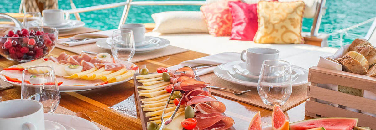 Отправляясь в путешествие на собственной или арендованной яхте, не обязательно брать в команду шеф-повара из ресторана. Организовать полноценное питание несложно, если придерживаться основных принципов. Приготовление пищи не составит труда и останется время, чтобы полюбоваться мелькающими за бортом видами. Заготовьте простые сытные закуски На свежем воздухе, а тем более в море, есть хочется практически постоянно. Нарезанные овощи и фрукты – хороший перекус в ожидании полноценного обеда или ужина. А для восстановления сил и энергии можно предложить орехи и злаковые батончики. Составьте меню на весь период плавания До начала круиза уточните привычное питание гостей и членов команды, исключите продукты, вызывающие аллергию. При составлении меню отдавайте предпочтение самым простым блюдам. Зная, что и в какой день будет на завтрак, обед и ужин, можно составить список продуктов. Всё, что можно хранить при комнатной температуре, закупайте в точке отправления. Хранение продуктов Все продукты