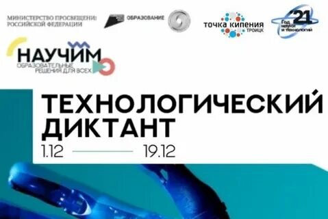 Сегодня во всех филиалах и структурных подразделениях Регионального центра технического творчества объявлен день Технологического диктанта! А это значит, что воспитанники детских технопарков «Кванториум» из Челябинска, Магнитогорска, Троицка и центров цифрового образования «IT-куб» из Сатки и Южноуральска могут проверить свои знания онлайн и получить сертификаты участника. «Цель диктанта — познакомить как можно больше людей с современными технологиями и оценить их знания в этой области, — поясняет Владислав Халамов, руководитель регионального центра технического творчества. — Это новый проект Федерального центра дополнительного образования, который реализуется в период с 1 по 19 декабря. И наше учреждение, являющее ведущим техническим центром на Южном Урале, конечно же, не смогло пройти мимо такой возможности и присоединилось к всероссийской образовательной акции одним из первых». Для того чтобы стать участником Технологического диктанта, необходимо: Тебя ожидают вопросы из мира совре