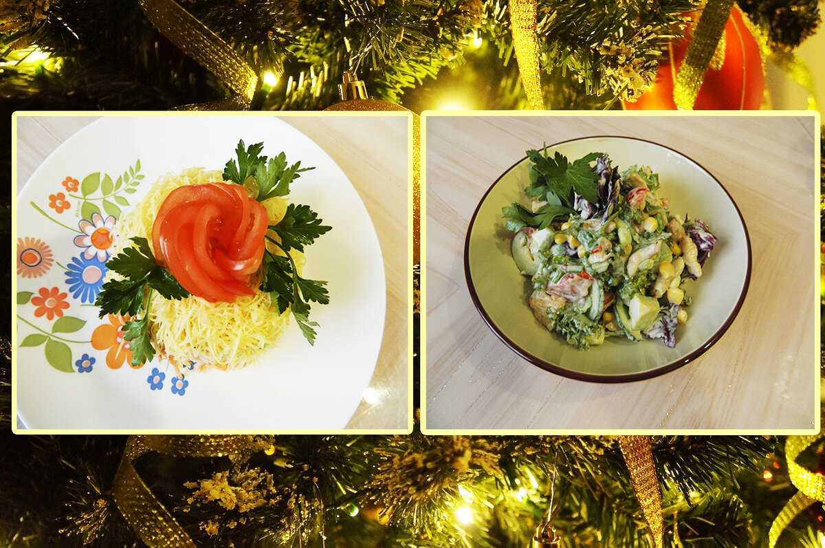 Здравствуйте читатели моего канала! Сегодня хочу поделится с вами рецептами салатов которые можно приготовить на новогодние праздники. Готовятся очень быстро и легко. И так преступим. Салат № 1 Ингредиенты Способ приготовления 1. Нарезаем грудку копченую, огурец кубиком. Сыр натираем на мелкой терке, яйцо на крупной 2. В любой емкости смешиваем все ингредиенты, кроме сыра и заправляем майонезом 3. Готовый салат выкладываем в праздничное блюдо, посыпаем сыром и украшаем салат зеленью и помидоркой. Салат № 2 Ингредиенты Способ приготовления 1. Филе куриное нарезаем тонкой соломкой, маринуем любыми спецами и обжариваем на сковороде до готовности 2. Авокадо чистим и нарезаем кубиком. Помидоры и огурцы нарезам на дольки, затем мелко шинкуем зеленый лук. 3. Смешиваем все ингредиенты, заправляем сметаной и добавляем немного горчицы и соль по вкусу. 4. Готовый салат выкладываем в праздничное блюдо и украшаем зеленью Вот такие вкусные салаты получаются. С наступающим новым годом! #новогодние