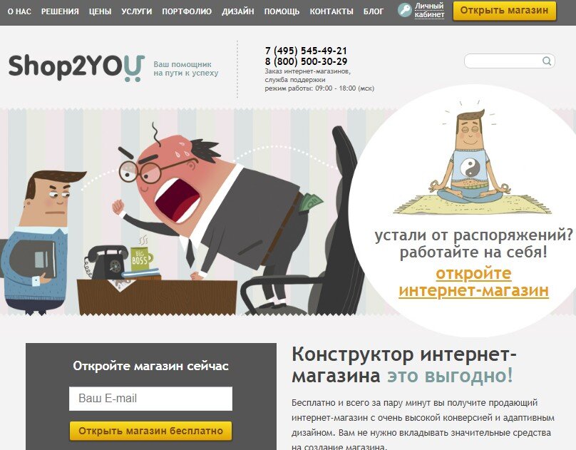 Если Вы уже давно хотите, но никак не решаетесь открыть свой интернет-магазин, то сейчас самое время. Потому что конструктор интернет-магазинов Shop2YOU может стать вашим надежным помощником! Этот конструктор снимает все ваши риски на старте: