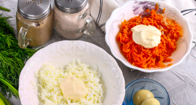 Популярный салат получается вкусным не только с рыбными консервами, но и с красной рыбой, к примеру - с горбушей в масле. По желанию отварной рис можно перемешать не с майонезом, а с маслом, оставшимся от рыбы. Главное - не добавлять много масла, чтобы блюдо не "поплыло". Лук лучше всего приобретать белый - он не горчит. Ингредиенты Рис (отварной) - 100 г Горбуша в масле - 80 г Яйцо куриное (отварное) - 2 шт. Морковь (отварная) - 1-2 шт. Лук белый (мелкий) - 1 шт. Соль - 3 щепотки Майонез любой жирности - 3 ст.л. Пошаговый рецепт с фото. Отварные морковь и куриные яйца очистите от кожуры, промойте в воде, разделите яйца на желтки и белки. Натрите белки в емкость отдельно от желтков на терке с мелкими ячейками. Морковь натрите в другую емкость на этой же терке. Выложите майонез любой жирности в емкость с белками и морковью, посолите и перемешайте Рис перемешайте с маслом от горбуши или с майонезом. Выложите в сервировочный квадрат, кольцо на тарелку. Очистите белый лук от кожуры, промой