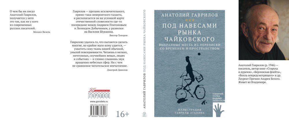 Гаврилов А. Г Под навесами рынка Чайковского. Выбранные места из переписки со временем и пространством : [рассказы]. — М. : ИД «Городец», 2021. — 192 с.: ил.— (Книжная полка Вадима Левенталя).