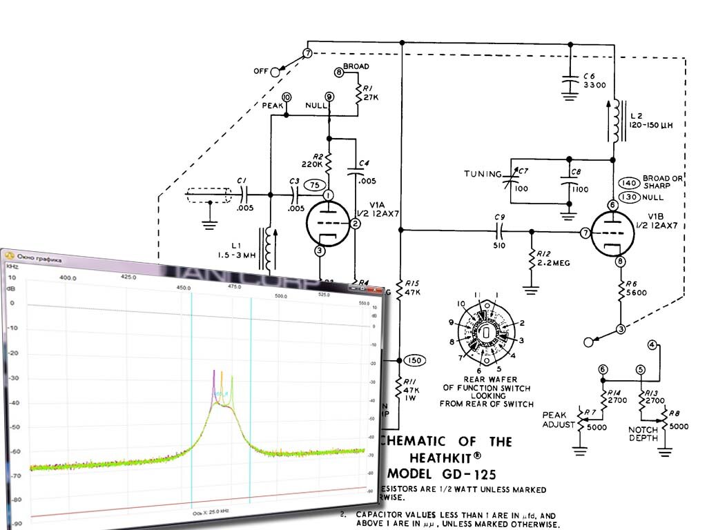 Одна из старых схем, которую я давно хотел повторить и проверить в работе - умножитель добротности (он же регенеративный усилитель ПЧ). Впервые о них я узнал из статьи «Регенеративные усилители ВЧ и ПЧ» в журнале «Радио» в №4 за 1962г (рис.3). В ней указывается, что подобная схема может серьезно улучшить параметры даже простых вещательных приемников. В статье упоминается, что подобные устройства выпускались за рубежом в качестве приставок к приемникам, иногда в виде наборов для самостоятельной сборки. Если поискать в интернете по ключевым словам "Q-Multiplier", "tubes", можно найти схемы таких конструкторов, выпускаемых с небольшими вариациями, разными фирмами. Посмотрев внимательнее на них, можно найти отличия в схеме, опубликованной в «Радио», от оригиналов. Например, пропущен конденсатор с анода левого триода, емкости некоторых конденсаторов указаны на порядок ниже. С такими же ошибками эта схема была перепечатана позже и в других источниках. Приставку решил собирать по