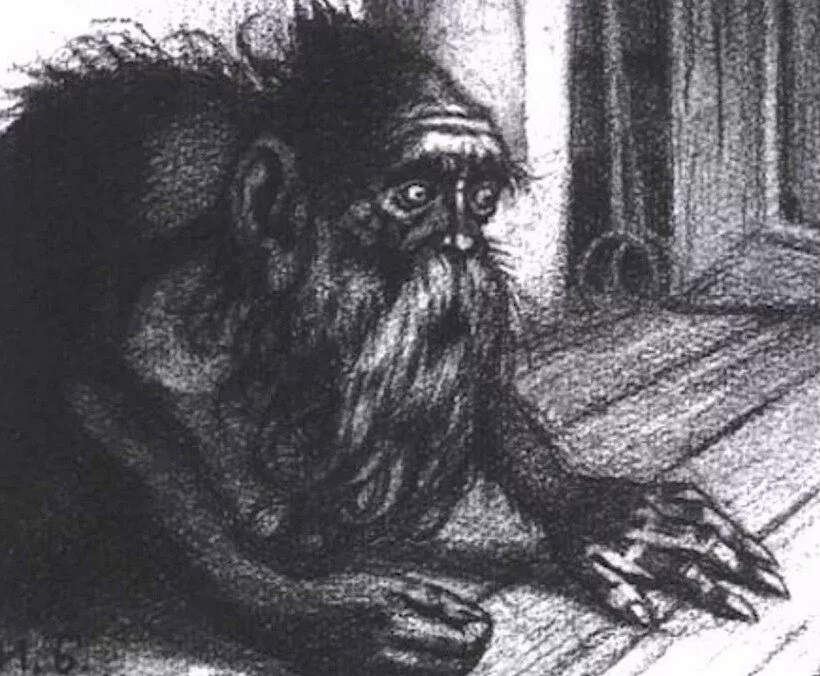 СКВОЗЬ РЕСТНИЦЫ ОНА УВИДЕЛА ЛОХМАТОЕ ЧУДОВИЩЕ.