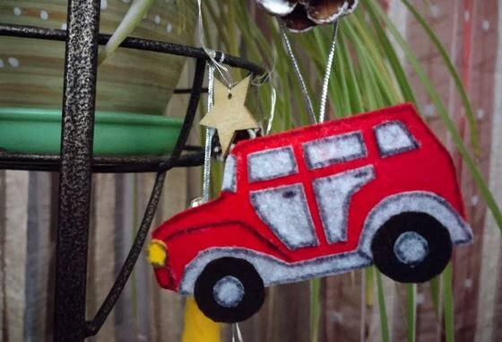 Позавчера я вас спросила, нужен ли урок о том, как сделать вот такую милую машинку. Ответ был утвердительным. Что ж, поехали! :) Опытным мастерам нужен лишь шаблон - вот он. Для остальных продолжу. :) Распечатайте картинку в двух экземплярах. То есть для работы нужны два таких рисунка. Размер может быть на ваше усмотрение, я делала ровно такую. Правда, я с перепугу потребовала себе 10 картинок распечатать! :) Это перебор, конечно. :) Машинку будем делать из фетра. Если фетра вдруг нет и взять негде, используйте материал, который не сыпется. Хоть картон. Вырезаем так: одну машинку целиком, а из второй выстригаем колесо, диск колеса, лобовое стекло, заднюю форточку, фару, низ машины и целиком двери-окна. На этот раз я выбрала для корпуса оранжевый цвет, фиолетовый для колёс. Серые диски и жёлтые фары. Узкую деталь вырезала так: наколола надёжно, тремя булавками. Не рисовала - так и резала, вдоль бумаги. Выпады, остатки, не выбрасывала, из них прекрасно выкраиваются мелкие детали типа ло