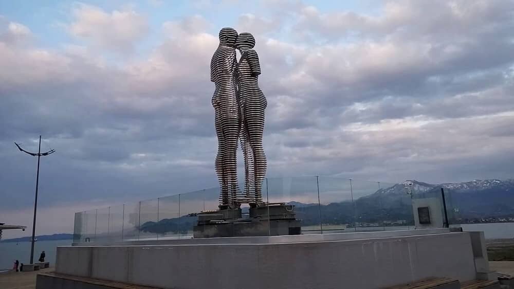 Памятник олицетворяет трагическую страстную любовь Али и Нино. Азербайджанца и грузинки. https://gruziapro.ru/wp-content/uploads/2019/02/ali-i-nino.jpg