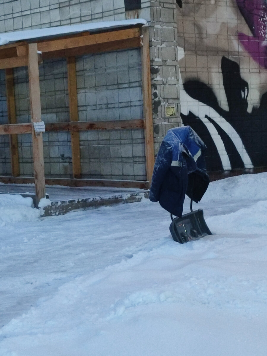 Стою на улице, возле меня дядька матюгается, снег убирает, все жизнь ему не мила... С него спится и сыпится ругань. Но снег чистит. Жизнь у мужика не сахар. И вот большой скребок вонзается во что-то затвердевшее под снегом и не идет дальше ни в какую. Улица опять наполняется заборным лексиконом. Мучился, но прочистил и так хорошо, так широко стало, что мне с коляской идеально. Потом ему жарко стало. Реверанс и куртка на скребке. Я стою и продолжаю ждать сына с секции, мы договорились, что я буду ждать именно здесь, где дворник работает. Надо сказать, что все это время он лицом вниз работал, даже не смотрел, кто и где идет. Закончил работу, собирается уходить я разворачиваю коляску и благодарю его за столь приятную дорогу. Ибо именно для меня она была бы сложной, если бы он ее не чистил. Люди прошли туда-сюда, а я с коляской, с большими колесами как ГЕРАКЛ напрягаю все мышцы и со вздохами тащу коляску. Он поднимает голову, смотрит мне в глаза (в тот момент я подумала, может и возрас