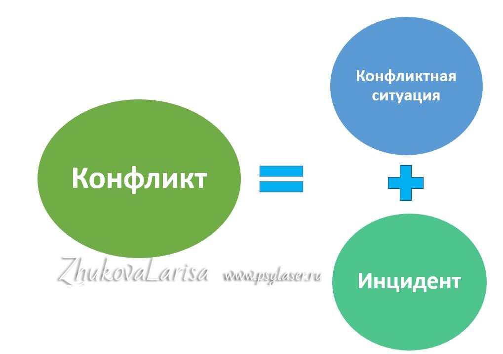 Структуру конфликта можно выразить формулой: Конфликтная ситуация характеризуется наличием противоречия в интересах и потребностях сторон, которое, однако, может долго не осознаваться. Она отражает всю совокупность причин и условий, предшествующих конфликту и вызывающих его. На конфликтную ситуацию обычно влияют: объект конфликта, его субъекты (стороны), позиции (мотивировка) сторон, образ ситуации, представленной в сознании каждой из сторон. Динамика конфликта. Началом конфликта выступает инцидент, т.е. действия оппозиционных сторон, направленные на достижение их целей. Инцидент характеризуется осознанием конфликтной ситуации и переходом к непосредственной активности. Однако нельзя приравнивать осознание конфликтной ситуации к инциденту, так как оно не является инцидентом, но инцидент из нее вытекает. Таким образом, конфликт представляет собой следствие накладывания инцидента на конфликтную ситуацию. Развиваясь по определенным закономерностям, конфликт имеет свою динамику, в которой в