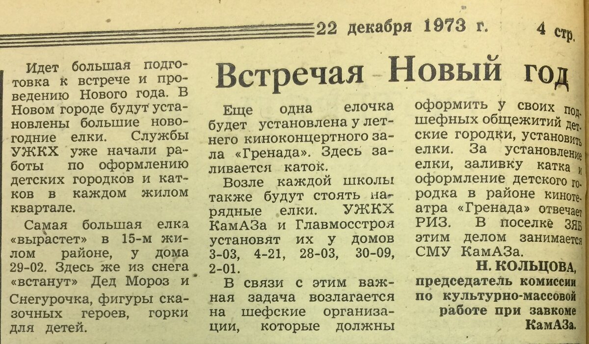 Новый год уже не за горами. Предлагаю вам познакомиться с газетными материалами прошлых лет. Внизу заметка из газеты «Рабочий КАМАЗа» от 22 декабря 1973 года. Внизу передовица газеты «Рабочий КАМАЗа» от 1 января 1976 года. Внизу первая страница газеты «Рабочий КАМАЗа» от 1 января 1977 года. Внизу плакат из газеты «Рабочий КАМАЗа» от 1 января 1985 года. Внизу программа развлечений для камазят, опубликованная в газете «Рабочий КАМАЗа» от 27 декабря 1988 года. Внизу новогоднее поздравление камазовцам, опубликованное в газете «Рабочий КАМАЗа» от 31 декабря 1989 года. Внизу праздничная афиша, опубликованная в газете «Рабочий КАМАЗа» от 30 декабря 1991 года. Внизу обращение к читателям «Челнинской газеты» от 1 января 1992 года. Внизу заметка из газеты «Вести КАМАЗа» от 17 декабря 1996 года.