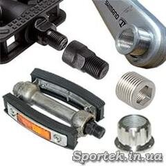 - Использовать специальные втулки (футорки), о которых будет рассказано ниже в разделе об «американском» стандарте. Такая втулка запрессовывается или вкручивается в шатун и уже в неё вставляется педаль. Но тут опять же без мастера не обойтись, и решается это в каждом конкретном случае отдельно.