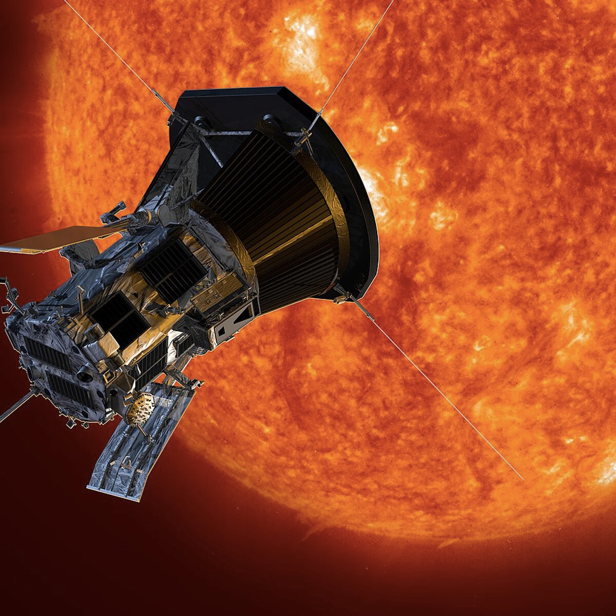 Космический аппарат Parker впервые в истории человечества достиг короны Солнца и взял образцы частиц и магнитных полей из верхних слоёв атмосферы звезды. Об этом сообщили в NASA. «Один важный шаг для Parker Solar Probe и один гигантский скачок в солнечной науке» - назвали это событие Национальное управление США по аэронавтике и исследованию космического пространства (NASA). Так как температура в верхних слоях атмосферы Солнца может достигать 500 000 кельвинов (около 500 000градусов по Цельсию), зонд провёл там очень непродолжительное время. Но даже данные, полученные за столько короткое время, заметно продвинули науку вперёд. По словам ученых, также как высадка на Луну позволила понять механизм образования спутника Земли, так и прикосновение к материи, из которого состоит Солнце, поможет ответить на многие вопросы, касающиеся самой звезды, а также её влиянии на солнечную систему в целом. NASA запустило солнеч