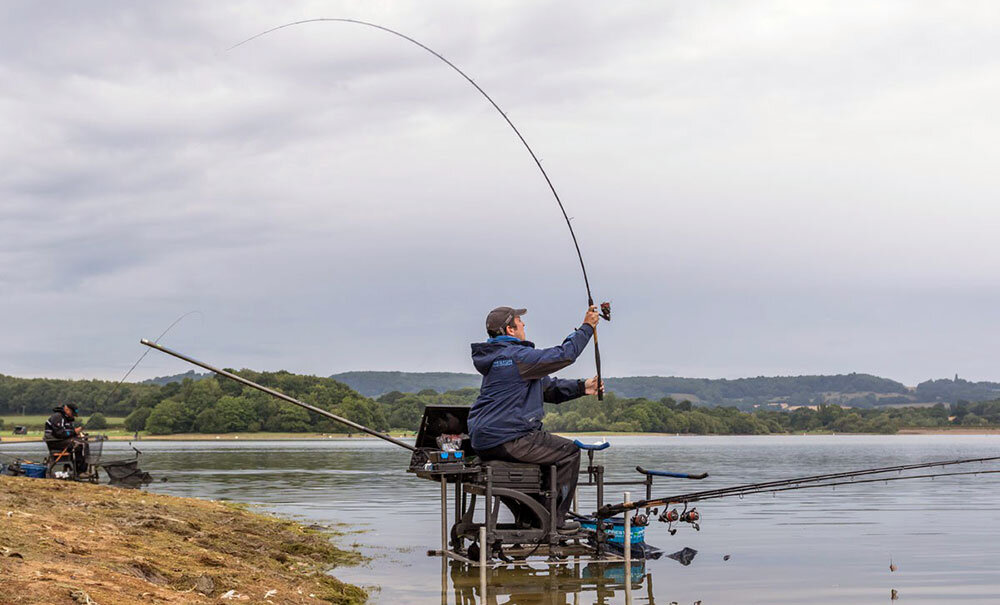 1. Fast (быстрый). Удилища с таким строем имеют высокую жесткость. При забросе или вываживании у этих удилищ изгибается только вершина либо первое колено от вершины. Фидеры с быстрым строем неприхотливы в использовании. Благодаря быстрому бланку они обладают отличным, точным броском. Но есть у таких удилищ и минус. Из-за быстрого бланка они могут плохо срабатывать при вываживании крупной рыбы. Чтобы минимизировать этот недостаток, с удилищами строя фаст рекомендуется использовать фидергам, который вместе с бланком будет эффективно гасить рывки крупной рыбы. Используют удилища с быстрым строем на реках с мощным течением или на водохранилищах и озерах, где предпочтителен далекий бросок.