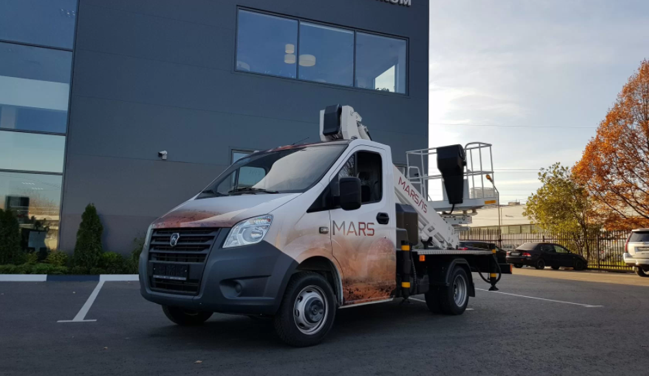 Порошковая покраска автогидроподъемника Mars/15. POROSHKOM.