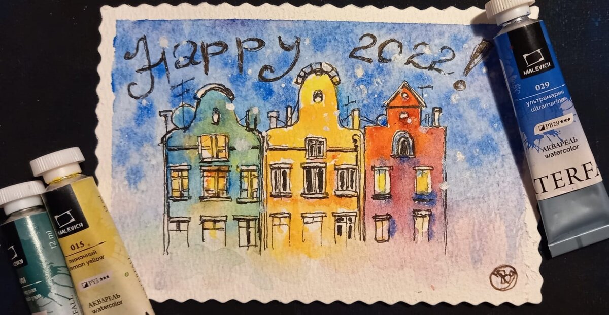 Первое занятие было о том, как быстро и эффектно нарисовать разноцветные дома. Обязательно буду перерисовывать арт, так как именно подобным образом мне легче разобраться с работой и понять как ее сделать лучше. А пока вот: Второй арт - это простая, но очень милая новогодняя композиция с варежками. И мне понравился результат и эффект у работы. Мне видится, что это дверь приоткрытая в ожидании Нового года. А третий скетч в мини-курсе посвящен символу наступающего года. Тигру. Тигры вообще очень эффектные животные, а в технике, которую предлагает обычно Анастасия на своих курсах - можно сделать очень эффектного тигренка. У меня пока получилось вот так. Но именно этот арт хочется опять же повторить еще и еще. Возможно скоро покажу, что получается. К сожалению у меня образовался большой "пробел" в рисовании и ведении блога. Но скоро, надеюсь, сн