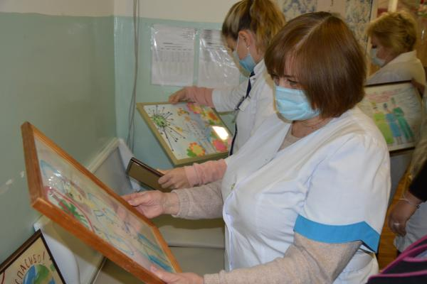 В казачьих костюмах выступили со словами благодарности ученики школы №14 перед коллективом медработников Детской городской больницы. Свою благодарность школьники выразили не только словами и песней, но и картинами. Рисунки для медиков подготовили ученики школы №14 и воспитанники детского сада №70. Врачи были приятно удивлены подаркам и пообещали повесить картины в своих кабинетах. Все рисунки были тут же разобраны и распределены по кабинетам. Наталья Несмачнова, учитель русского языка и литературы школы №14: – В рамках акции ученики школы №14 и воспитанники детского сада №70 подготовили рисунки и видеоролик со словами благодарности и поддержки медицинским работникам. Акция «Спасибо врачам» напомнит об огромном труде сотен врачей и медсестер, ежедневно борющихся за жизнь и здоровье каждого человека. Рисунки наших ребят — это бесконечная благодарность врачам, знак поддержки и уважения! В. Стальная