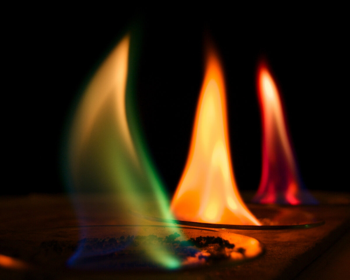 Откуда берется свет, почему некоторые вещества горят одним светом, а другие другим? Все дело в химических элементах которые там сгорают. На рисунке видно, что различные металлы горят различным светом. Что бы понять почему у разных веществ различные света пламени, ученые используют специальную призму через который пропускают свет от горящих материалов и получают света пламени разложенные в спектр. Они спектры напоминают штрих-код, в этом штрих-коде каждый свет линии принадлежит отдельному элементу. С помощью этого штрих-кода можно определить что в нем сгорает. Но откуда у этих элементов такие линии? Все дело в строении атомов. К примеру возьмем элемент у которого удин электрон который крутится в электронном орбитали рядом с ядром. При воздействии на него энергией (свет, тепло, радиация) он возбуждается и перескакивает на следующую орбиталь и когда он упадет вниз он излучит энергию определенной длины волны, и это длина волны имеет определенный свет. При воздействии с еще большей эне