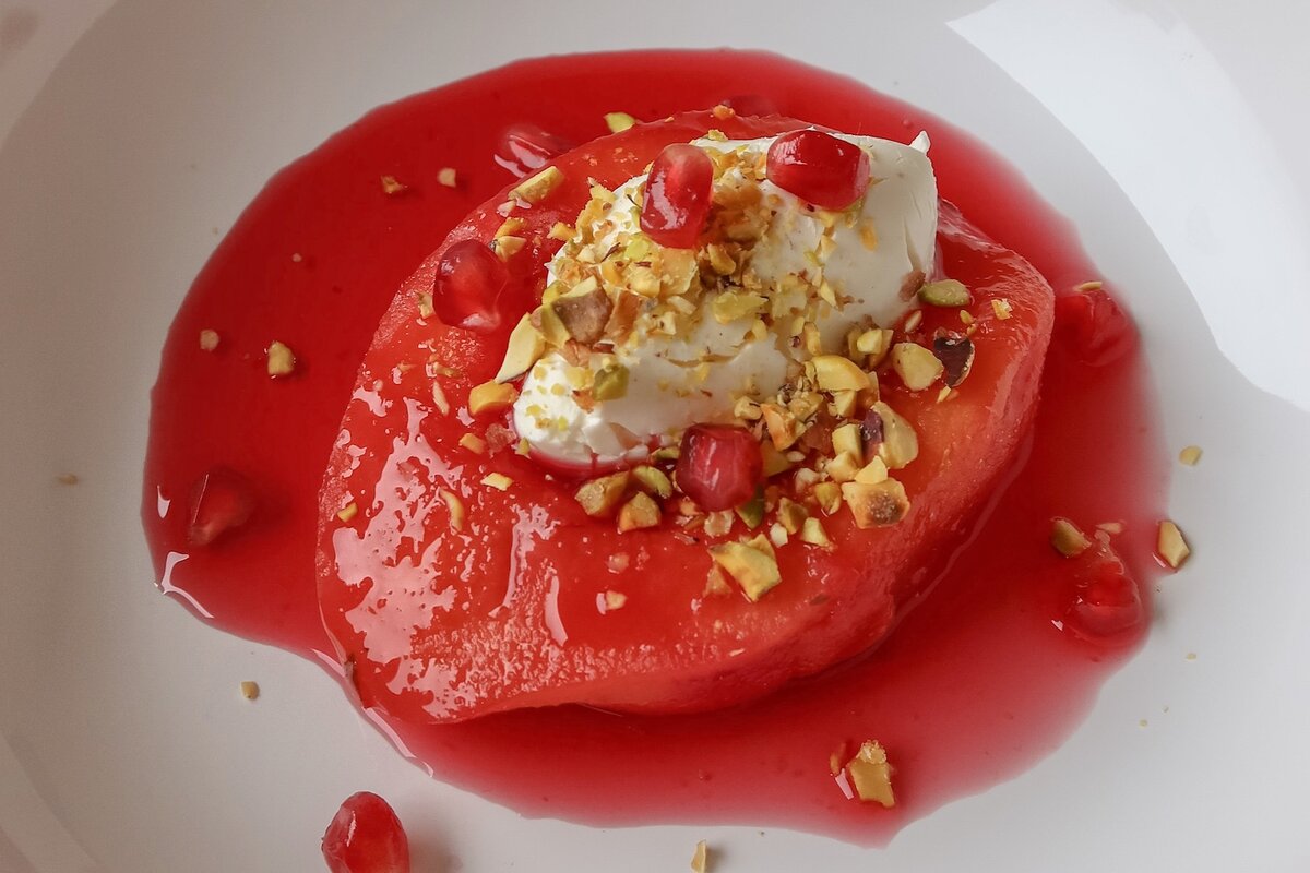 Алина Кузнецова — эксперт растительной кухни, основатель кулинарной школы Seven Seeds, а еще тот самый шеф, которому очень идет поварской китель. Она знает миллион кулинарных лайфхаков, с легкостью превращает орехи в сыр, а грибы — в оссобуко. Долгое время она жила в ОАЭ, потом училась на Бали, ненадолго вернулась в Екатеринбург, а теперь уехала в теплую зимнюю Турцию. Я давно просила ее поделиться рецептом для канала, наконец, звезды сошлись. Пока айву можно купить в любом магазине, предлагаю вам по инструкции приготовить этот простой и вкусный десерт. А после — еще и традиционный чечевичный суп! Айва татлысы (ayva tatlısı) — пропитанные сладким пряным сиропом томлёные половинки айвы Ингредиенты: Для сервировки: Способ приготовления: