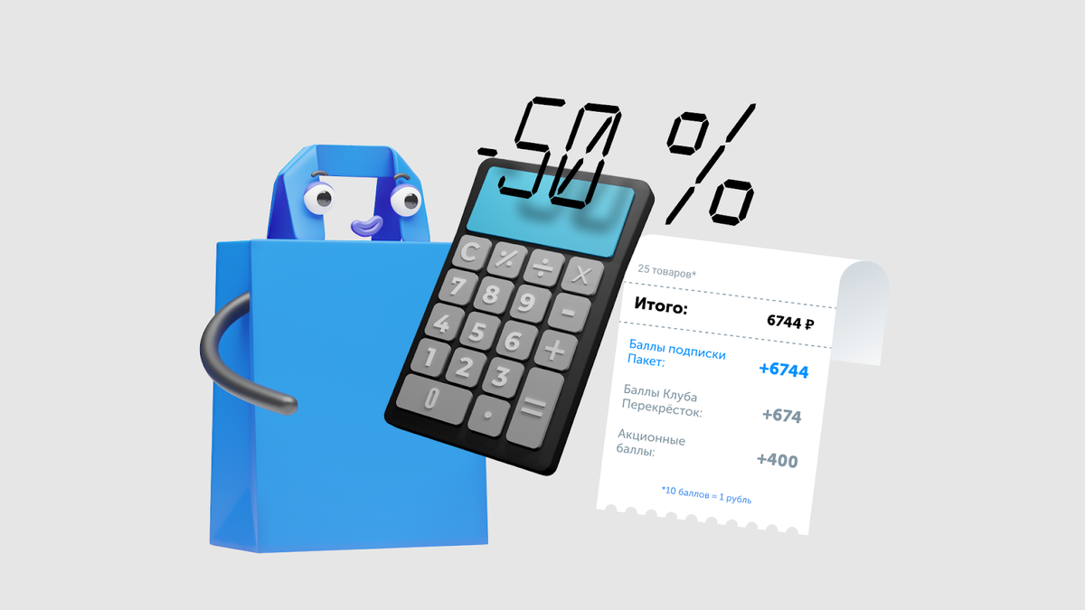 Кешбэк от Пакета суммируется с кешбэком по Выручай-карте и карте Клуба Перекрёсток. Например, в Перекрёстке обычно начисляют 1 балл за каждые 10 рублей, а подписка добавляет к этому 10% кешбэк. Потратили 2500 — получили 250 обычных баллов (25 рублей) на карту + 2500 баллов (250 рублей) благодаря Пакету. Общая экономия получается в 11 раз больше.