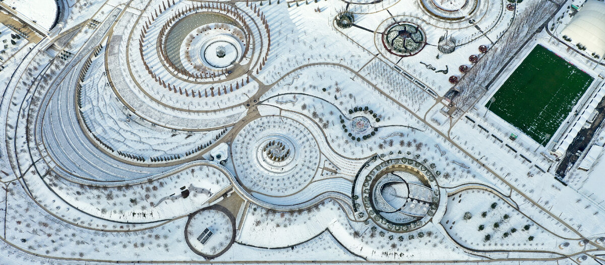 К новому зимнему сезону парк подготовился основательно. Новинок много: это светящиеся пингвины и грибы, огромные ангелы и красавица – ель, как символ Нового года, встречающая гостей в центральной части зеленого комплекса. Хвойное дерево манит гостей разноцветными огнями гирлянд и игрушек, создавая праздничное настроение и окутывая волшебством. Вообще, парк будто бы сам создан магическими силами. Галогеновое море фиолетового шалфея, которое волнами спускается к огромным светящимся лотосам, воздушные фигуры которых отражаются в водоемах. На лужайках можно встретить разноцветных пингвинов, они будто солдаты охраняют древнеримские колонны арт-объекта «Абстракта». А если прогуляться по парку дальше, то среди деревьев спрятались светящиеся грибы и огромные ангелы, которые смотрят на все четыре стороны света и трубят в горны, будто призывая новогоднее волшебство поскорее наступить.