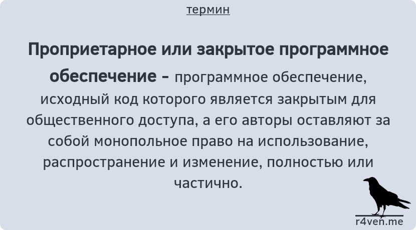 Приветствую! Ярким примером такого ПО является операционная система Windows. Её исходные коды закрыты, защищены авторскими правами и распространяется данная ОС по коммерческой лицензии. Подробно об условиях использования обычно пишут в многостраничном пользовательском соглашении (которое никто не читает) перед установкой. У данного подхода к разработке и распространению программ, как это часто бывает, есть свои недостатки и свои преимущества. С одной стороны, в случае монополии над разработкой ПО обычно сохраняется некая целостность программы, соблюдается конкретная идея и направление, и нередко от этого зависит качество продукта на выходе. Проприетарному ПО обычно противопоставляют открытое ПО. О нём я тоже написал заметку. Но другая сторона – это полная неизвестность о той части программы, которая не является её прямым функционалом. Так как исходные коды закрыты, независимые от разработчика специалисты не могут провести даже минимальный аудит, интересующих их разделов прог