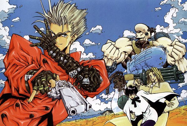 1.Триган. 1998 год (26 эпизодов). Сериал в жанре космического вестерна. Сериал был анимирован небезызвестной студией Madhouse по одноименной манге Ясухиро Найта в 1998 году. Сюжет этого аниме перенесет вас на пустынную планету Гансмоук, населенную более сотни лет назад людьми, прибывшими с истощенной и разоренной земли. Непонятным образом, обычай на этой планете сильно похожи на американский дикий запад: ковбои, выпивка, головорезы, награда за головорезов банд перестрелки и так далее. Так получилось, что за голову главного героя, нашего произведения назначена неслыханная награда - 60 миллиардов двойных долларов. 2.Берсерк. 1997 года (1 сезон - 25 серий). Берсерк, шикарное аниме с весьма красивой и качественной для тех лет рисовкой, прекрасной музыкой, и неповторимой атмосферой средневековья. Всё это сочетает в себе фантастику, экшен и драму, с добавлением психологических и философских элементов, производящих такое сильное впечатление при просмотре, что сериал вообще мало кого сможе