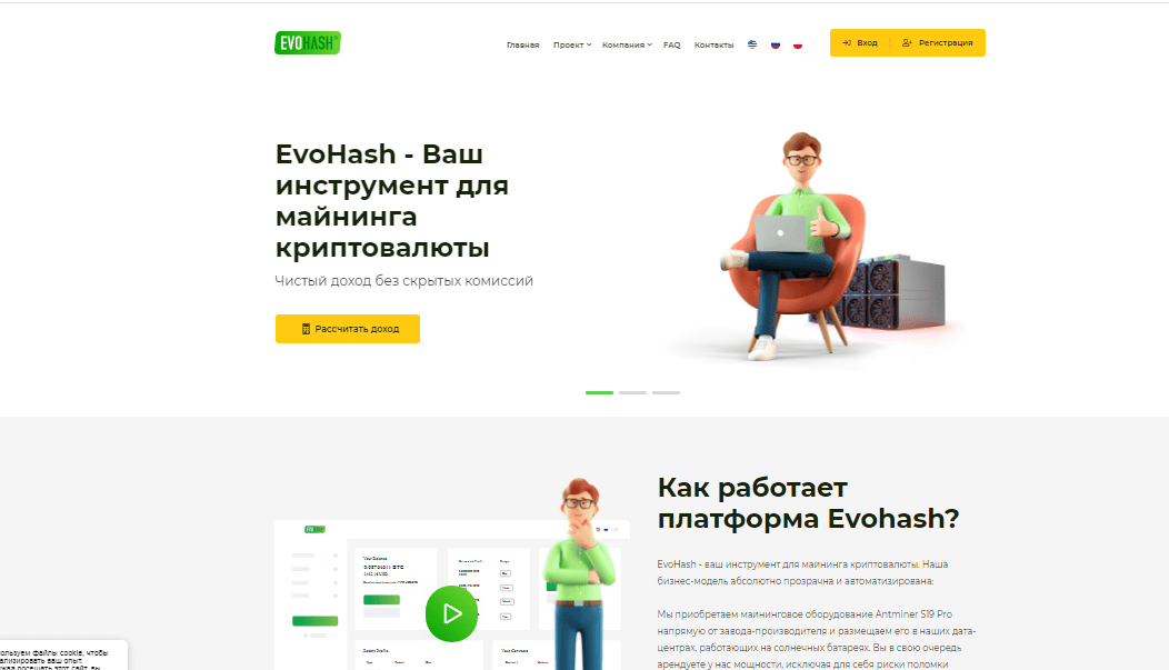 Лохотронщики готовы придумать что угодно, только бы пользователи доверяли им свои средства. Гоняясь за чужими деньгами, мошенники могут рассказывать какие угодно сказки, только бы люди велись на их легенды. Чтобы не угодить в очередной лохотрон, пользователям стоит быть более внимательными, ведь нарваться на развод сейчас очень просто. В последнее время аферы все чаще ориентированы на майнинг, который мошенники называют очень перспективной и прибыльной отраслью. Новички верят в то, что добиться успеха можно легко и быстро. Никто не задумывается над тем, что за успешной жизнью инвесторов и криптоэнтузиастов кроется большой труд, ведь для достижения своих целей нужно упорно работать. EVO HASH - яркий представитель разводил, который рассказывает о перспективном заработке на облачном майнинге. Реальная ситуация с этой шарагой обстоит совершенно иначе, так что давайте рассмотрим фирму ближе. Что удалось выяснить о EVO HASH? Внешний вид ресурса конторы не вызывает никакого доверия. Он нескол