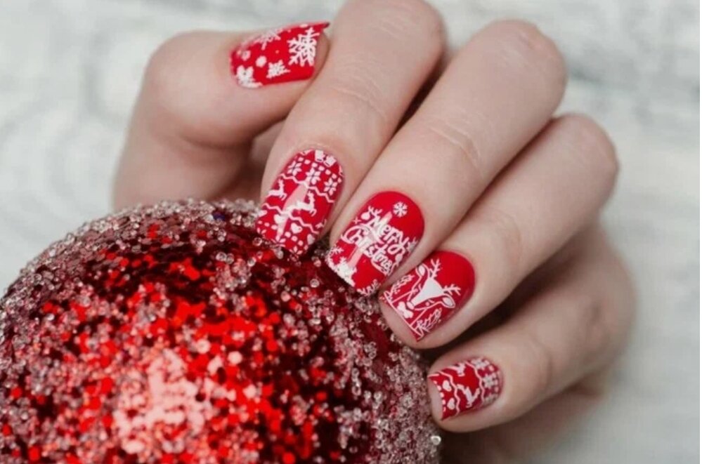 2. Красно-зеленый новогодний маникюр