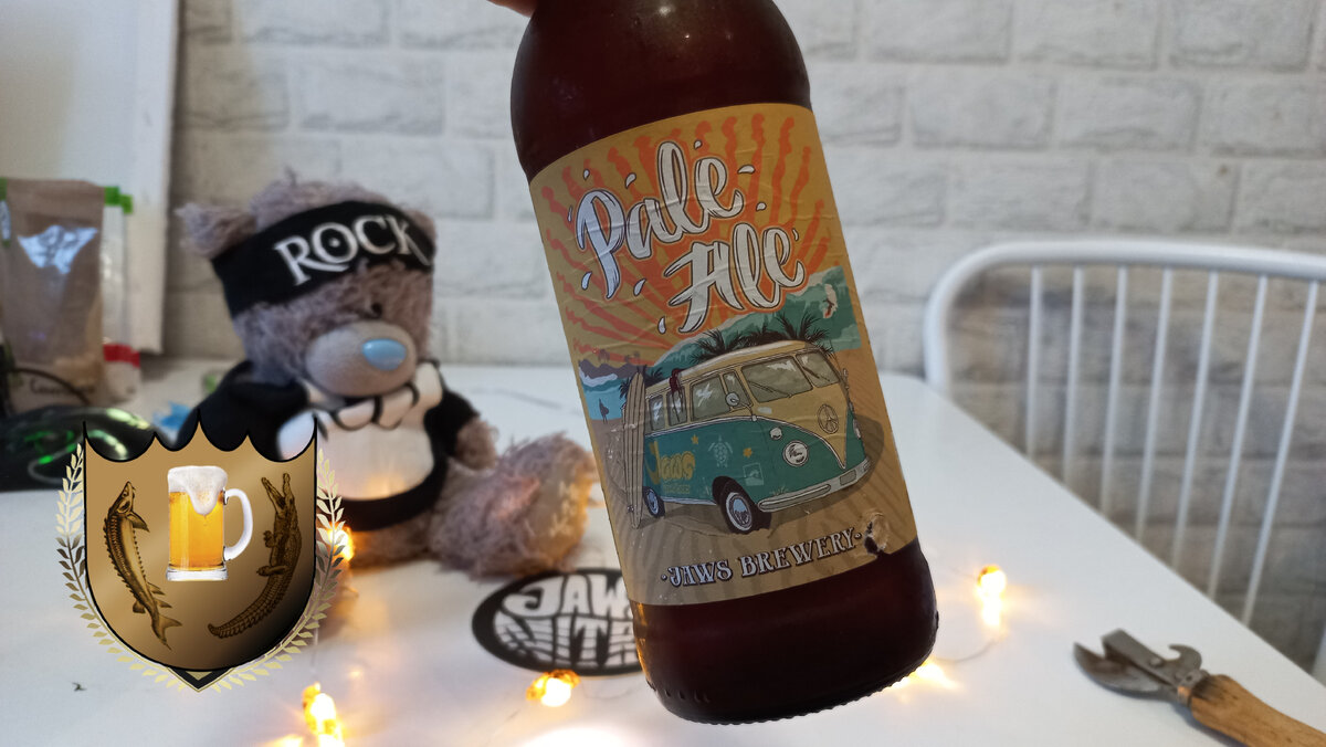 Моё почтение любителям пенного! Вот сижу и думаю, для чего я собственно заказывал обычный Pale Ale, когда у меня перед домом он есть в обычной наливайке. И усреднённая цена с доставкой данной бутылки мне обошлась в 190,22, когда в наливайке можно его взять за 160р!!! (а когда подходит срок, то по скидону и по 130 и ниже) По-моему я сам себя это самое!!! Но да что уж теперь сетовать, давайте лучше пиво пить! Хотя Кузьма на меня по сих пор косит сурковым глазом!!! Брррр. Аж не по себе! Послушаем пивоваров: Образцовый представитель своего стиля. Выразительный бисквитный вкус специальных солодов дополняется сбалансированной цветочно-древесной горчинкой благородных хмелей В 2013 году загрузив свои доски в старый добрый автобус Т1, мы отправились покорять огромные волны. Начав свой путь на побережье Великобритании, со временем Jaws Pale Ale был отнесён течением в сторону Соединённых Штатов, приобретя там новаторский дух. Но корни английского консерватизма оказались сильнее, и наш Pale Ale