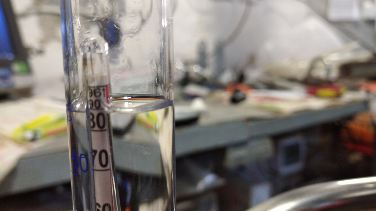 После этих этапов очистки доводим температуру нашего самогона примерно до 20 градусов и с помощью спиртомера измеряем его плотность(крепость). Она окажется выше, чем 40 градусов. Для достижения 40 градусов необходимо разбавить самогон кипяченой водой в необходимом количестве. При этом раствор нужно тщательно перемешать и повторно замерить плотность.