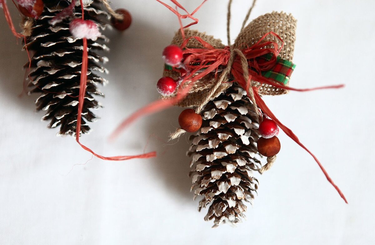 Приближается Новый год. Столько всего надо успеть и порой на украшение дома времени не хватает. Но... Можно сделать украшение воими руками, проведя время не только с пользой, но и интересно. А материалом для поделок станут обычные шишки. Запастись ими только желательно заранее. Начнем с того, что попроще. 1. Елочные игрушки из шишек. Тут все зависит от полета вашей фантазии. 2. Гирлянды из шишек Гирлянду можно тонировать белой краской, добавить небольшие шарики, ленточки или ламповые гирлянды. Небольшой гирляндой можно украсить входную дверь. 3. Вазы с шишками Шишки раскрашиваем красками и наполняем ими вазы или салатницы. Выкладываем на красивые тарелки или подносы. Можно затонировать их белой краской, что создаст иллюзию инея. А можно просто положить в любую неглубокую посуду и украсить еловыми ветками и гирляндой из лампочек. 4. Венок из шишек Он может быть как простым - только из шишек, так и с добавлением шариков, желудей, сушеных фруктов и проч