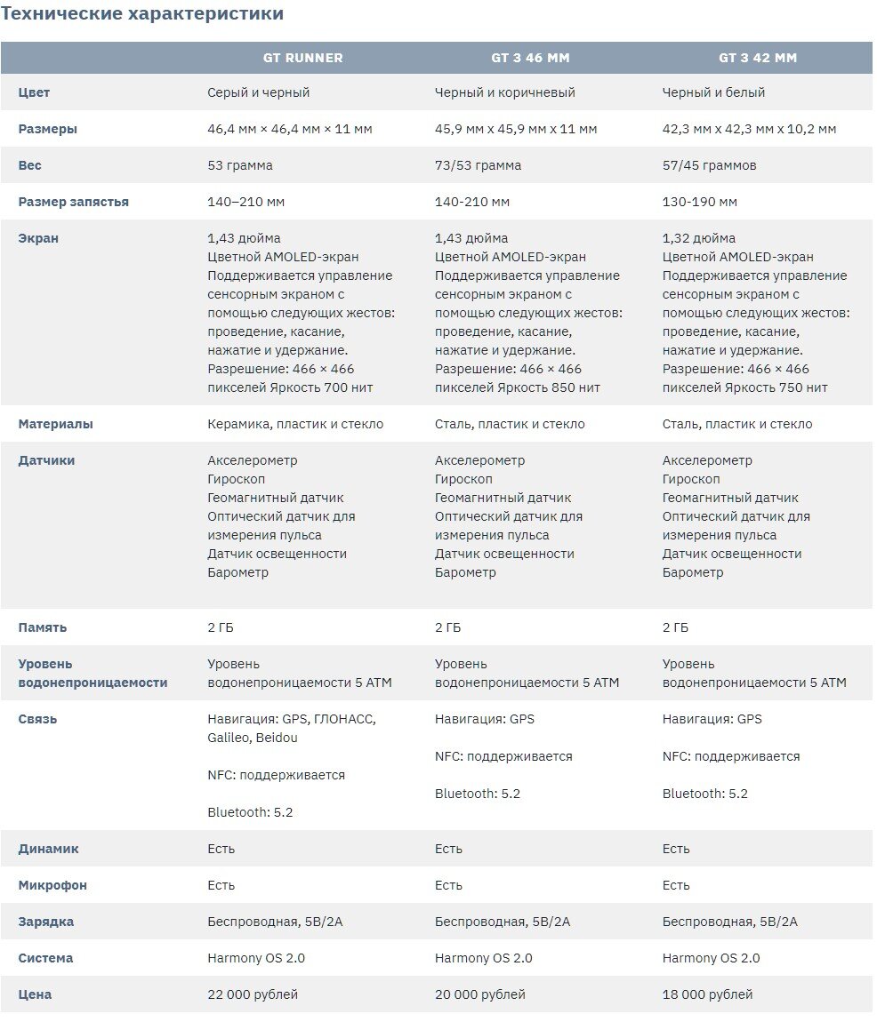 С экранами устройств все значительно проще: версия Runner продается только 46 мм (1,43 дюйма), а GT 3 — либо 46 мм (1,43 дюйма), либо 42 мм (1,32 дюйма).