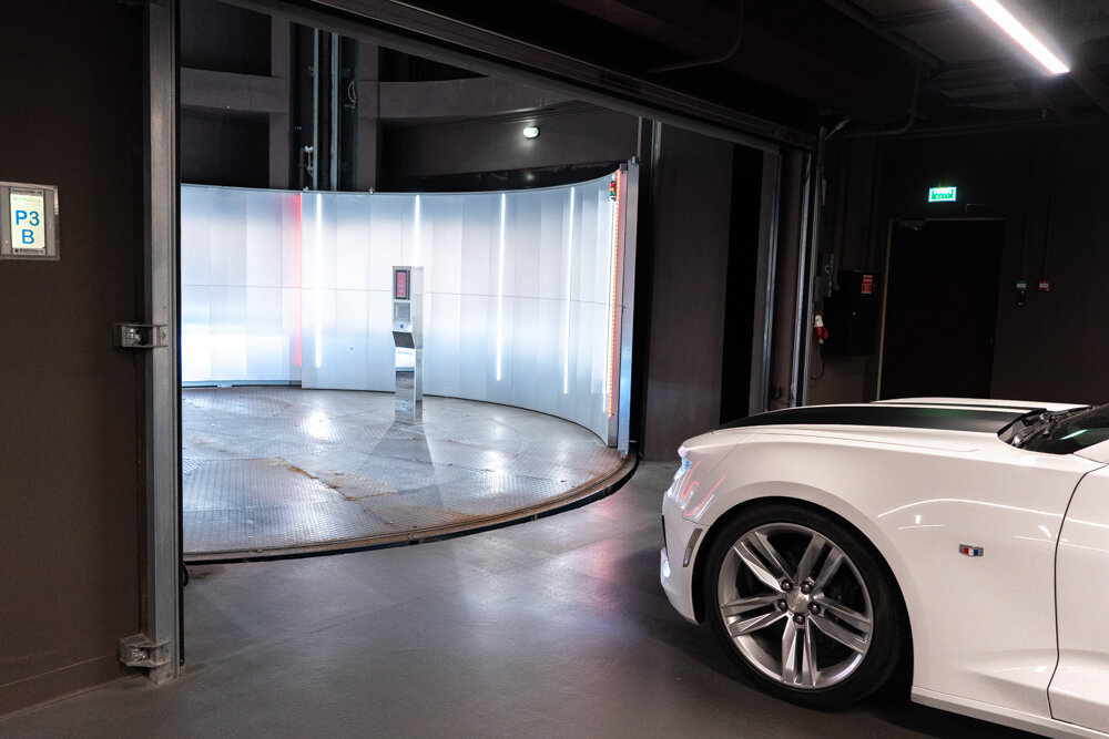 Самый необычный вращающийся автомобильный лифт для подземного паркинга