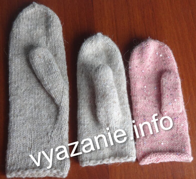 Поговорим сегодня о варежках. Как вязать варежки, чтобы носились, были тёплые, удобные и красивые. Я люблю вязать на 5 спицах по кругу. Делюсь своим опытом. Пряжу лучше брать пушистую и приятную, спицы подбирать по пряже, даже чуть тоньше рекомендованных. Чем плотнее и пушистее свяжем, тем меньше дырочки, а значит теплее варежки, лучше не продуваются. Мне больше всего нравится вязать из пуха и цветной шерсти. Манжеты у варежек раньше всегда вязала резинкой, чтобы плотно прилегали к руке. Сейчас в рукава зимней одежды очень часто вшиты трикотажные резинки и варежки носятся сверху. Поэтому вяжу чаще манжеты лицевой гладью. Украшаю или наборным краем, или отворотом, или простым небольшим узором по краю. Как вязать палец. Способов много. Для однотонных, я считаю, можно вязать любой. Если пряжа пушистая, различий почти не видно. А вот если вяжете с рисунком, тут лучше "вписаться" в рисунок. 1 способ. Петли большого пальца (например, 7 петель) провязываем нитью контрастного цвета, возвра
