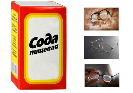 Из соды и воды готовят жидкую кашицу. Полученный состав наносят на ватный диск и круговыми движениями обрабатывают линзы. Затем очки промывают большим количеством воды. При необходимости процедуру нужно повторить.